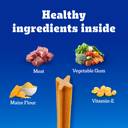 The Pedigree Dentastix consists of active ingredients, such as Zinc Sulphate and Sodium Triopolyphosphate which, with the help of the special mechanical action, help in effectively slowing down the rate of tartar buildup. Apart from these two, these dog treats also feature cereal, starch, humectant, cereal protein, vegetable gum, and minerals essential for your dog's good oral health. They're also loaded with meat and meat by-products derived from poultry and pork, and cellulose, making these dog treats beneficial for your pet's overall health.
