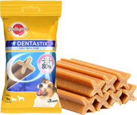 If you've a dog that's above 4 months of age, and weighs between 5 and 10 kg, then this dog treat is ideal for him. You can give your pet one stick per day to keep his teeth healthy and strong. Once you open a sachet of Pedigree Dentastix, make sure that you use it within 14 days of opening. Also, always keep a bowl of clean drinking water available for your dog.