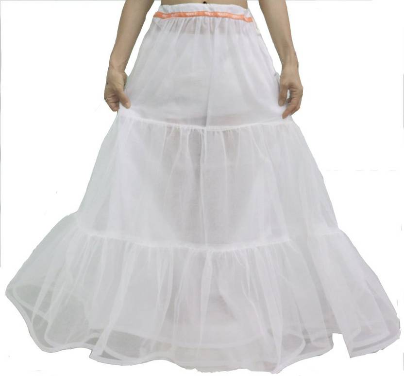 Flared Crinoline Petticoat is suitable under long floor length skirts, lehengas and other dresses for giving beautiful volume and flare. There is lining for extra comfort. This petticoat is so stiff that you can make it stand without support. Net fabric. Its suitable for medium volume. For Super Voluminous look.
