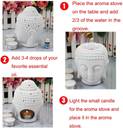 Easy To Use-Take up the lid of the Buddha Head ceramic aromatherapy furnace, put a spoon of water & 5 - 8 drops of the oil into the bowl. The tea light warms up the essential oils in stone saucer to diffuse aromas and fragrance