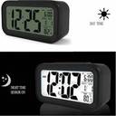 Digital Smart Alarm Clock Backlight Battery Operated Table Clock with Clear LCD Display Automatic Sensor, Date & Temperature-Black Colour