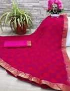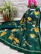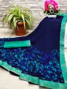 Printed Georgette Sarees, Everyday Casual, Solid saree with contrast border