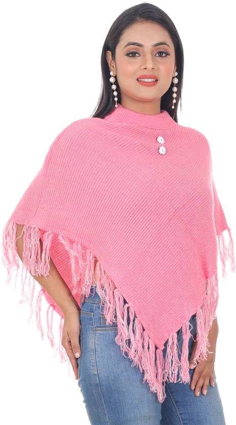 These kinds of woolen poncho tops, which are quite uncommon, were self-designed by "DYENTHIS" and are made for women only. They are made with soft yarn and excellent finishing.This Beautiful series of Ponchos is made of wool and has a nice color finish.Round necked, solid-colored ponchos with a collar that buttons up are part of this lovely line. These go well with leggings, jeans, chinos, etc. Ponchos can keep you warm & cozy during the winter months.