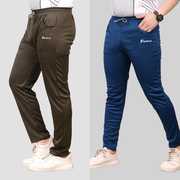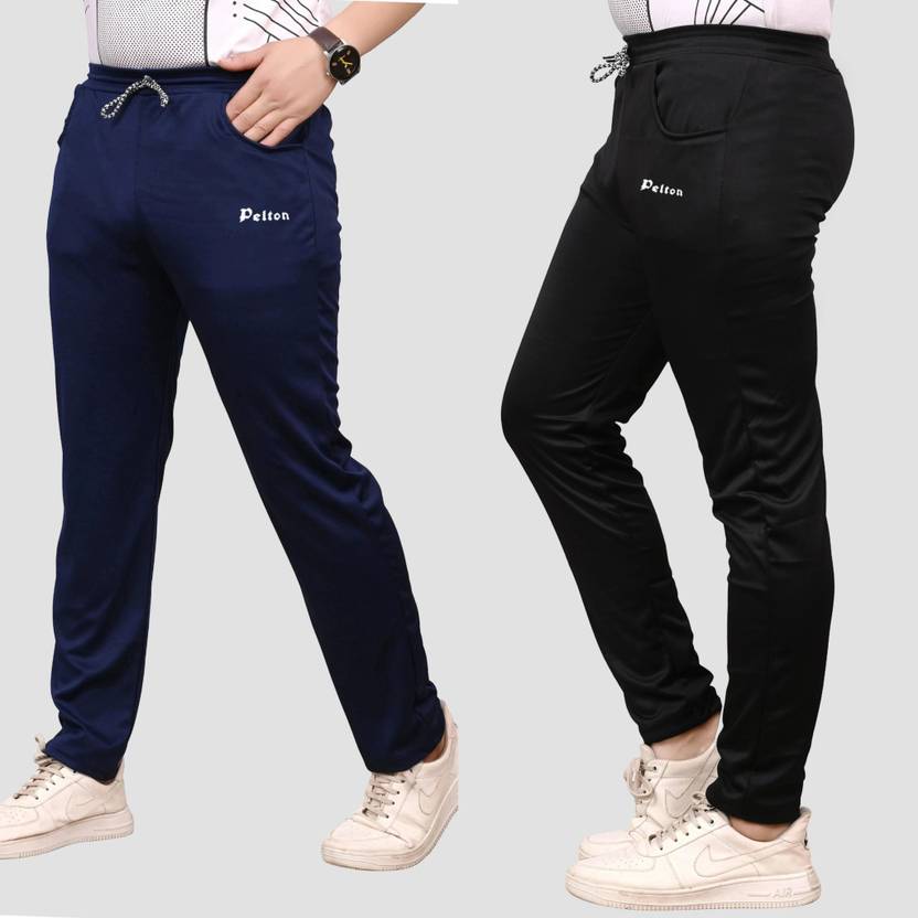 pelton Solid, Printed Men Blue, Black Track Pants