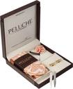 WHAT DO YOU GET: 1) One (1) Neck Tie, One (1) Brooch, One (1) Pair of Cufflinks, One (1) Pair of Collar Stay; 2) Chic Storage Box, Care and Instruction guide & Peluche Trust
