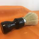 Professional barber shaving brush with boar bristle knot. This is a very large brush made for heavy use. Black ABS handle with ring.