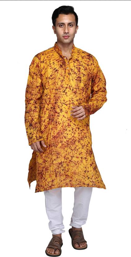 PENTACRAFTS Men Printed Cotton Blend Straight Kurta (Yellow)
