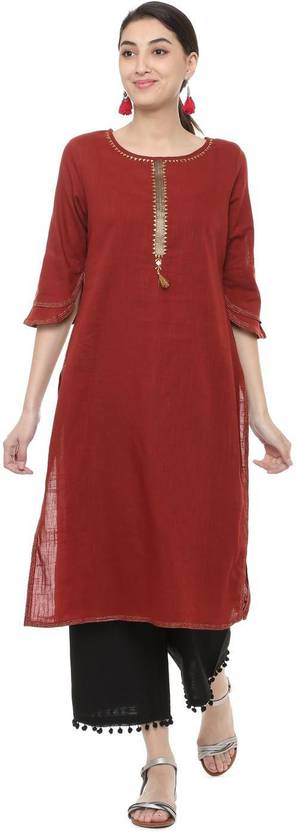 PEOPLE Women Solid Straight Kurta (Red)