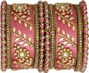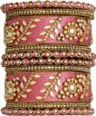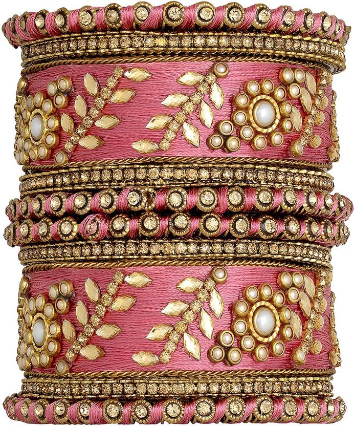 Designer Silk Thread Matching Pink Floral Bangle Set Bridal Wedding Chuda Chura Indian Ethnic Fashion Jewellery for Women Girls