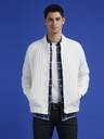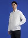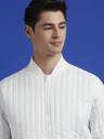 Navigate winters with style by wearing this sophisticated white bomber jacket for men. Made from durable nylon, it's built to last while keeping you on-trend. The vertical quilting serves a dual purpose - creating a sleek visual appeal while boosting the jacket's insulation properties. What sets this piece apart is the unique embroidery details that add a personalised flair that's sure to catch the eye. A subtle silicon branding on the sleeve complements the overall modern aesthetic. The high neck and zip closure offer adjustable protection against the elements. Two slit pockets provide practical storage for your everyday essentials. Team this men's jacket with dark wash jeans and clean, minimalist sneakers for a cosy, urban look.