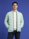 Discover the perfect blend of comfort and fashion with this solid green jacket for men. Crafted from durable nylon fabric, it offers protection against the elements. This jacket is also designed with 3M Thinsulate to keep your body warm during heavy winter conditions. It features silicon branding on the sleeve for an exclusive touch. This medium-wadded bomber jacket has a high neck for coverage and a zip closure for a secure fit. Furthermore, the two slit pockets provide convenient storage options or allow to keep hands warm. Pair this men's jacket with dark jeans and a white tee for a timeless, casual look.