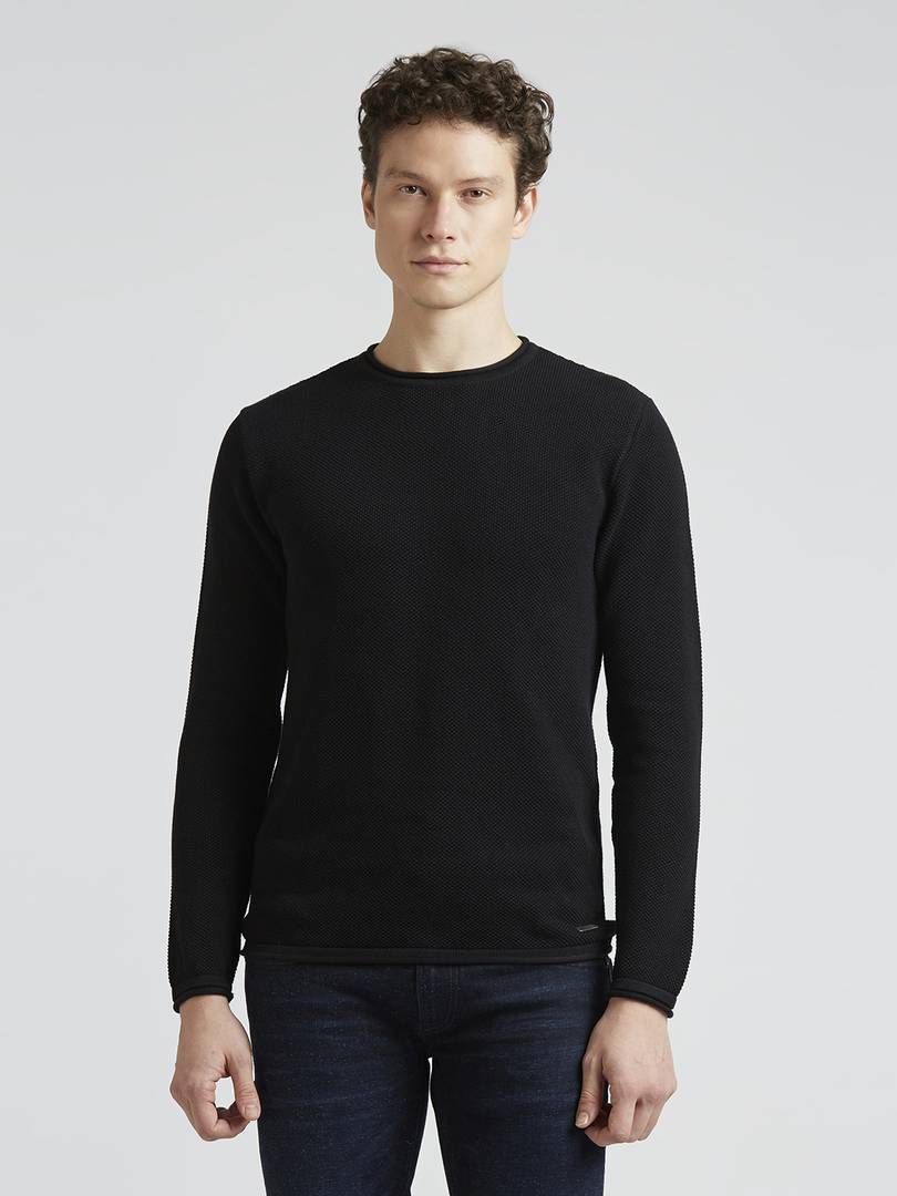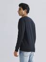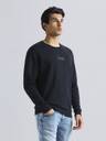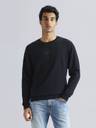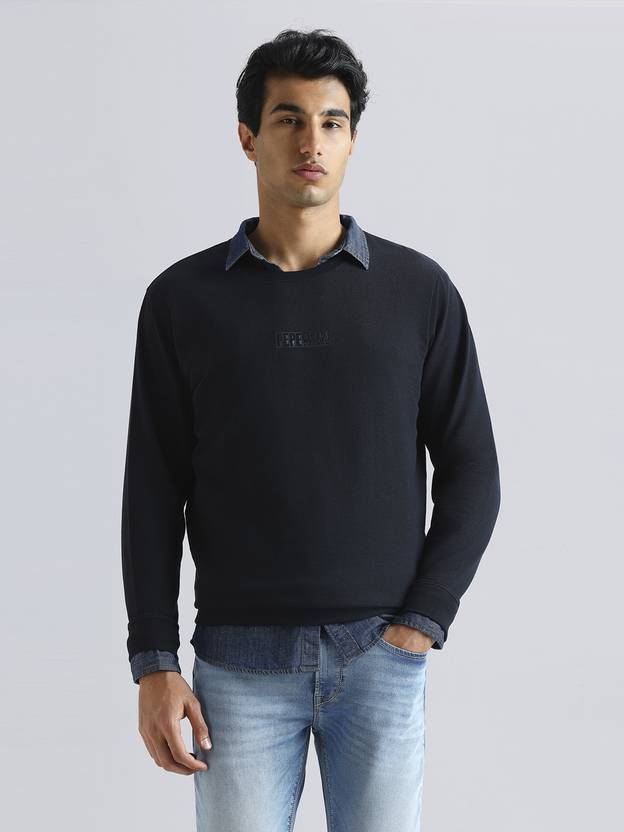 Perfect your casual look with this sleek black French terry sweatshirt for men. Crafted from soft cotton and treated with a softener wash, it offers unparalleled comfort for all-day wear. The standout feature is a subtle tonal high-density print at the chest that adds a touch of sophistication to the classic design. Full sleeves provide coverage, while the crew neck offers timeless appeal. A contrasting neck tape detail adds a pop of interest that elevates the overall look. Perfect for layering or wearing solo, this men's sweatshirt pairs effortlessly with jeans or joggers for a stylish, relaxed ensemble.