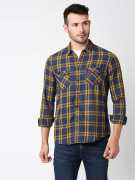 Pepe Jeans Men Checkered Casual Yellow Shirt