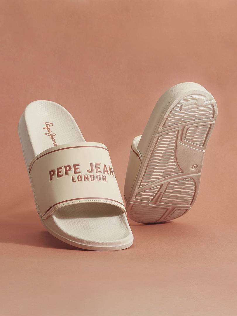 Step into casual comfort and effortless style with the Pepe Jeans London Beige Slip-On Slides, designed for men who value a blend of fashion and functionality. Crafted with a durable Polyurethane (PU) upper, these slides offer a smooth, soft touch while ensuring long-lasting performance. The slip-on style makes them easy to wear, ideal for quick outings, lounging at home, or relaxing by the pool. The wide strap features the bold “PEPE JEANS LONDON” branding in contrasting red, adding a distinctive and stylish appeal to the minimalist beige base. The contoured footbed provides excellent comfort and support for all-day wear, while the textured outsole ensures better grip and stability on different surfaces. Lightweight and easy to clean, these slides are perfect for summer days, beach trips, or simply adding a relaxed vibe to your everyday look. Pair them effortlessly with shorts, joggers, or swimwear for a cool and contemporary style statement. Whether you are strolling through the city streets or enjoying a vacation getaway, these Pepe Jeans slides combine laid-back comfort with premium design, making them a must-have addition to your casual footwear collection.