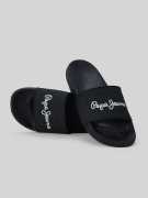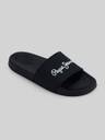 Ideal for beach outings, poolside relaxation, or casual strolls, these sleek black slides for men seamlessly blend practicality with modern aesthetics. Designed for both style and comfort, these beach sandals feature a wide strap adorned with contrast and embossed branding details, adding a refined edge to their minimalist appeal. The soft PVC construction ensures durability and flexibility, while the lightweight EVA outsole makes every step effortless. A high-cushioning design paired with a contrasting anatomic footbed delivers unmatched support and comfort. Team these slip-on sandals with a utility vest, lightweight pants, and aviator sunglasses for a contemporary, vacation-ready outfit.