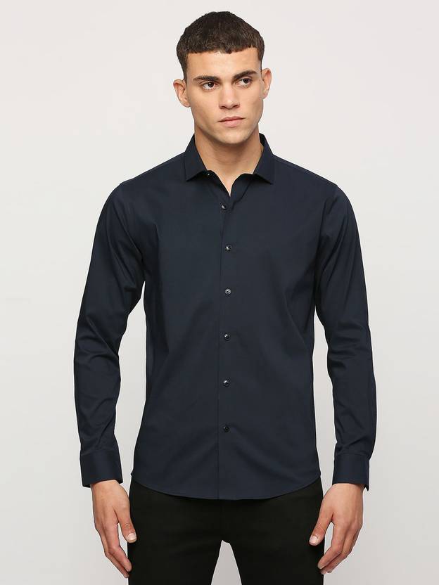 Pepe Jeans Men Solid Casual Dark Blue Shirt