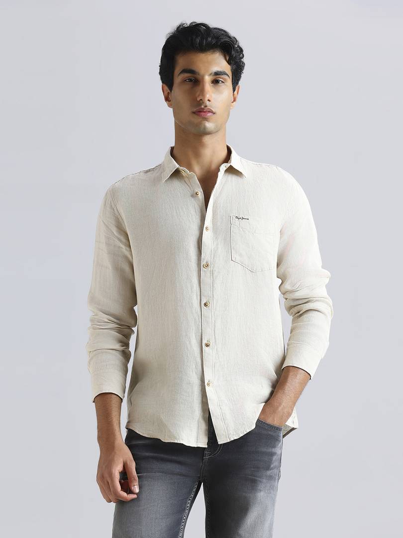 Transform your look with this versatile white linen shirt for men. Crafted from high-quality linen, it offers natural breathability to keep you cool in warm weather. The enzyme bio wash treatment not only softens the fabric but also enhances the fabric's durability. The full sleeves provide protection for outdoor activities, while the front patch pocket offers convenient storage for small essentials. The button closure allows for easy on-and-off throughout the day. Pair this men's shirt with navy chino shorts and boat shoes for a relaxed yet sophisticated look.