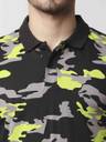 Mens Stretch camo printed Polo with neon highlight, high branding at sleeve, contrast neck tape & soft washed