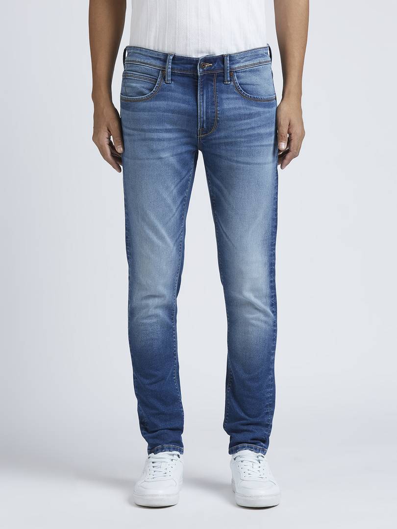 Take on the day with confidence by wearing these blue jeans for men. The knitted Gymindigo fabric offers the comfort of joggers but with the sleek, edgy look of denim. Made from a cotton blend with stretch, these jeans move with you for all-day freedom. The iconic mid-waist sits comfortably, while the skinny silhouette flatters your form for a modern look. What's more, the five pockets offer ample storage for your essentials. Pair these men's jeans with a graphic band tee and statement sneakers for a head-turning festival look.