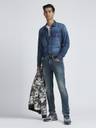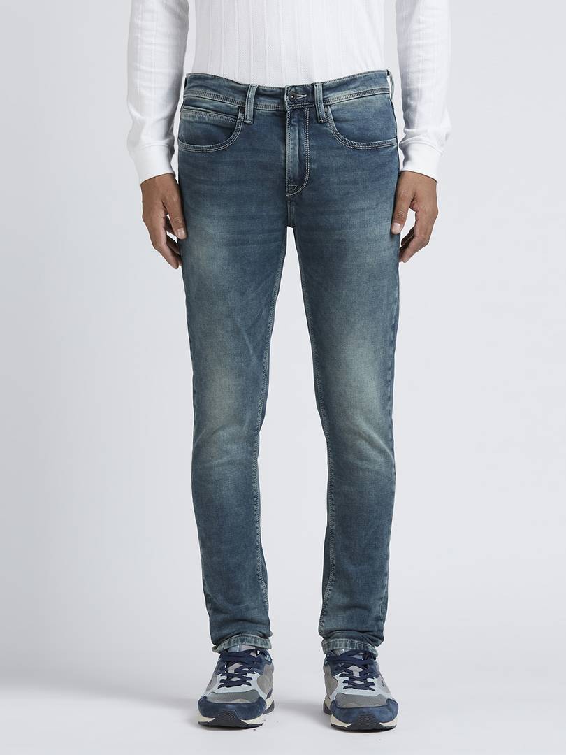 Level up your denim collection with these iconic blue mid-waist jeans for men. Crafted from a knitted Gymindigo stretch fabric, these jeans offer the laid-back comfort of joggers with the performance of denim. Featuring a skinny fitted leg in a tinted blue wash, they add a modern twist to your wardrobe. The buttoned waist and zip closure provide a secure fit. Complete with five pockets, these men's jeans are practical and stylish. Style them with a fitted tee and sneakers for a trendy, urban look.