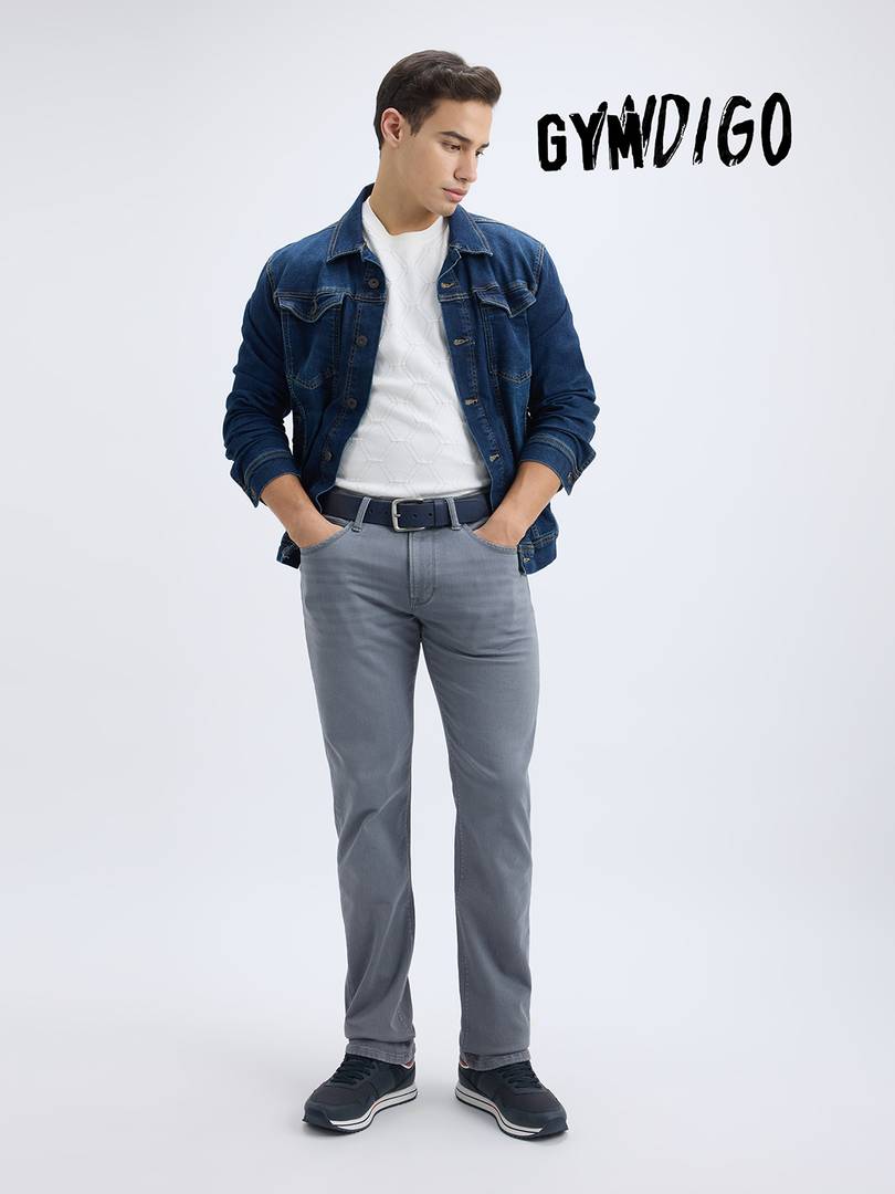 Step into casual comfort with these men's grey regular-fit jeans. Crafted from an innovative knitted stretch fabric, these Gymindigo jeans brilliantly merge the comfort of your favourite joggers with denim's classic performance. The 90s-inspired straight legs and regular fit create a timeless silhouette. In addition, a mid-rise cut with zip closure and buttoned waist ensures a secure, comfortable fit. Pair these versatile hybrid jeans with a textured sweater and white sneakers for an effortlessly cool weekend look.