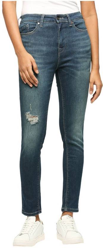 Discover The Perfect Fusion Of Style And Comfort With These Blue Hyperflex Jeans, Expertly Crafted For Women Who Value Both Fashion And Flexibility. The High-Waist Skinny Fit, Along With Stretch Fabric, Ensures Both A Flattering Silhouette And Flexibility. These Jeans Feature Trendy Distressed Details And Heavy Fading, Adding A Touch Of Urban Charm. With A Zip Fly And Five Belt Loops, These Jeans Are Both Fashionable And Functional. Crafted From A Cotton Blend With Spandex, These Women’S Jeans Offer Comfort And Ease Of Movement. Pair With A Tucked-In Blouse And Ankle Boots For A Chic And Edgy Look.