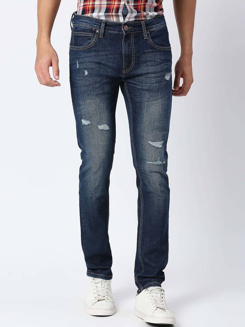 Men Slim Mid Rise Blue Jeans