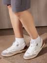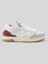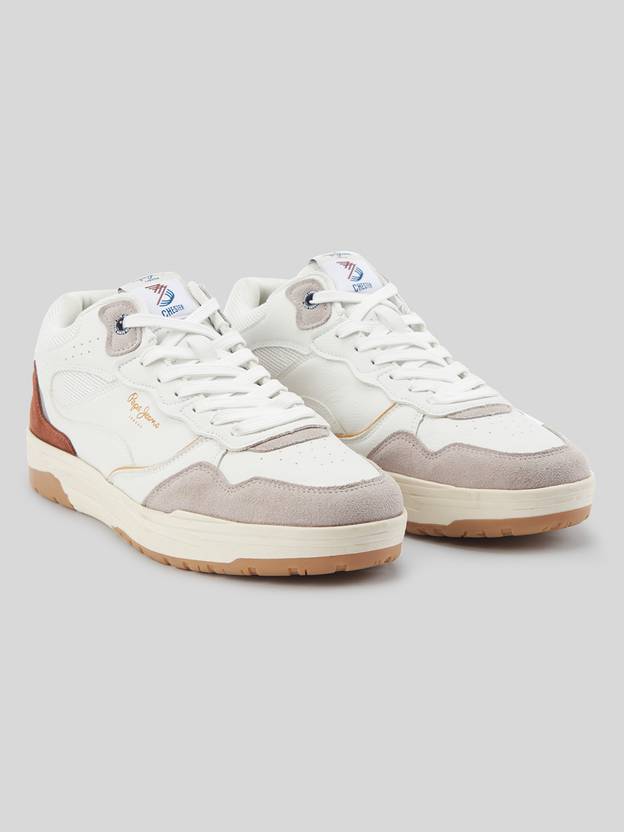 Elevate your sneaker game with these men's off-white and grey high-cut cupsole sneakers. Crafted from a high-quality blend of leather and PU, these comfortable sneakers offer a cosy feel that stands the test of time. The colour contrast of off-white, grey, and brown adds a fashion-forward edge. The customised dual-colour high-volume rubber outsole ensures a secure, anti-skid grip. Micro perforations on the toe cap keep things breathable, while the removable thermoformed insole gives you that tailor-made comfort. Finished with a classic logo on the lateral side, these everyday sneakers are your ultimate go-to for both style and performance. Pair them with slim denim and a hoodie for a relaxed, off-duty outfit.