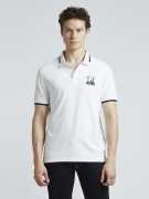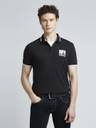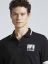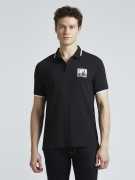 Elevate your casual style with this graphic print black polo for men. Crafted from a soft cotton-blend stretch fabric, it offers breathable comfort and unrestricted movement. The short sleeves and ribbed collar lend a classic polo silhouette, while the photographic print at the chest adds a bold, graphic element. Featuring contrast branded tape and tipping at the collar and cuffs, this polo exudes a sporty, contemporary vibe. Furthermore, the soft-washed fabric ensures a gentle feel from the first wear. Pair this men's polo with chinos or joggers for a relaxed yet fashion-forward look.