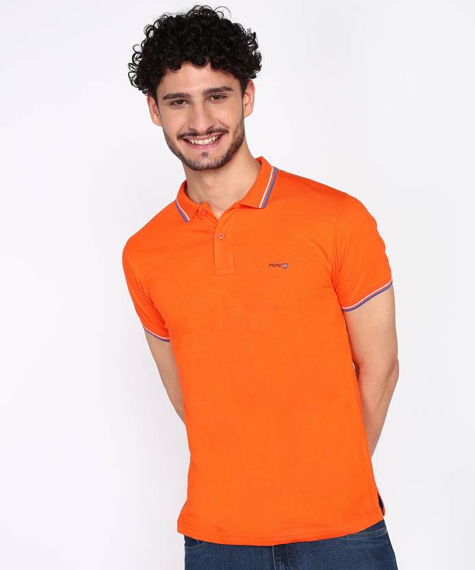 Pepe Jeans Solid Men Polo Neck Orange T-Shirt