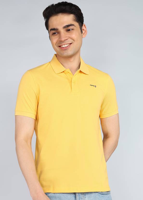Pepe Jeans Solid Men Polo Neck Yellow T-Shirt