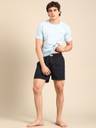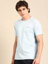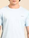 Men Solid Round Neck Cotton Blend Blue T-Shirt