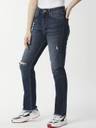 Dark shade, heavy fade blue jeans Straight fit, high-rise Slash knee Stretchable 5 pocket Length: cropped