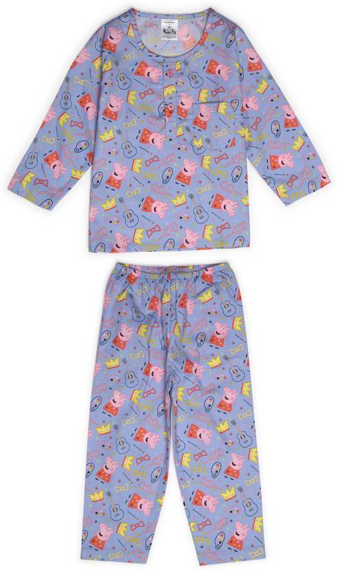 Girls Printed Cotton Kids Nightwear (Purple Pack of 1)
