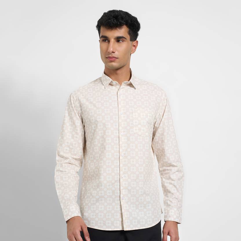 Peregrine by Pantaloons Men Printed Casual Beige Shirt