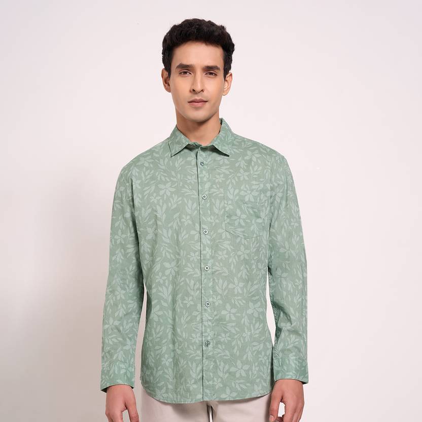 Peregrine by Pantaloons Men Printed Casual Green Shirt