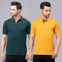 We Perfect Pack of 2 Men Solid Polo Neck Cotton Blend Green, Yellow T-Shirt