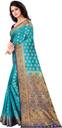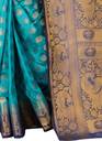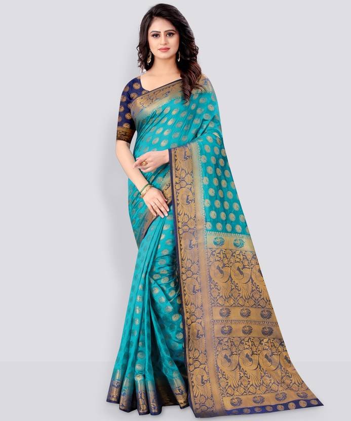 Total length of this saree is 6.30 with blouse. The length of the blouse is 0.95 The saree has a wrap of one meter It has a zari lining two inches apart and the jacquard weaving of the saree is 4.50