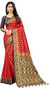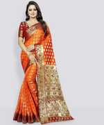 This is a very beautiful saree as you can see This saree has patola like design inside Fine enamel work has been done inside the design And also it has contract pallu and brocade blouse in it