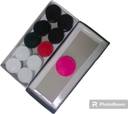 PERICO Acrylic Carrom Coins (10 black 9 white 1 red) with pink striker Carrom Pawns (Pack of 20)