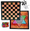 PERICO Double Sided Game Chess+Chinese Checker With Plastic Chess goti, checker goti 30 cm Chess Board (Multicolor)