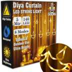 These curtain rice lights feature charming diya-shaped elements that exude a warm and inviting ambience. The ethereal glow emanating from each diya creates a serene and magical atmosphere, ideal for festive occasions or everyday decor. The intricate design of the diya shapes adds a touch of traditional elegance to any space, evoking a sense of peace and tranquillity.