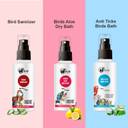 Instant Waterless Birds Bath Anti Ticks Kit - * Aloe Dry Bath Shampoo -60ml, * Anti Ticks Birds Bath -60ml, * Birds Sanitizer -60ml