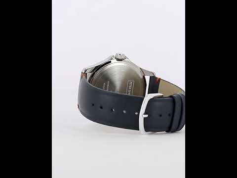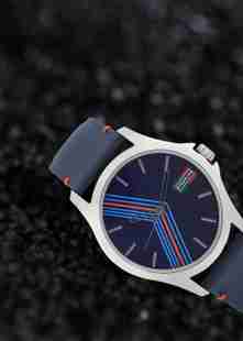 Edgy blue dial watch with orange highlights