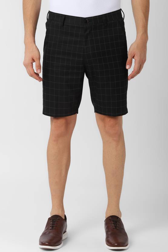 PETER ENGLAND Checkered Men Black Beach Shorts