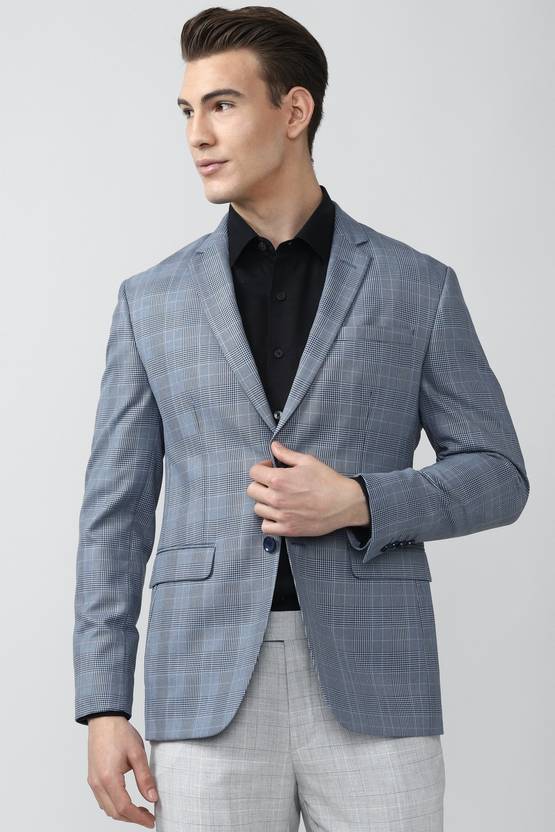 PETER ENGLAND Checkered Single Breasted Formal Men Blazer (Blue)