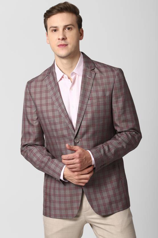 PETER ENGLAND Checkered Single Breasted Formal Men Blazer (Red)