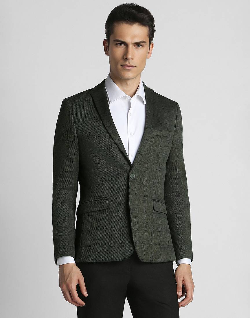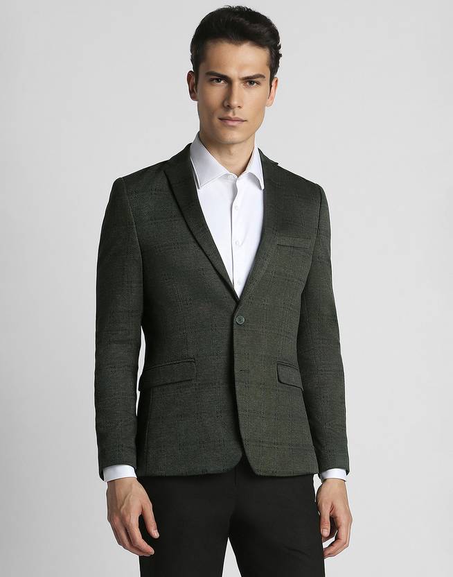 PETER ENGLAND Checkered Single Breasted Formal Men Blazer (Black)