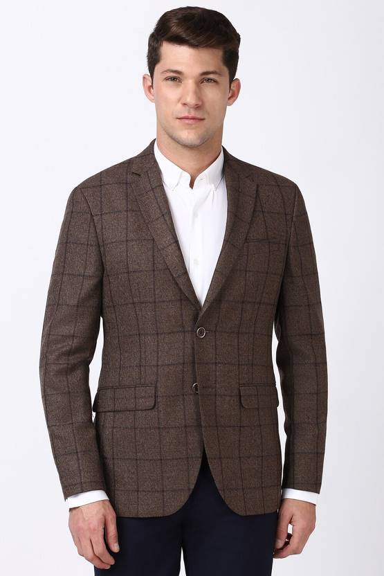 PETER ENGLAND Checkered Single Breasted Formal Men Blazer (Brown)