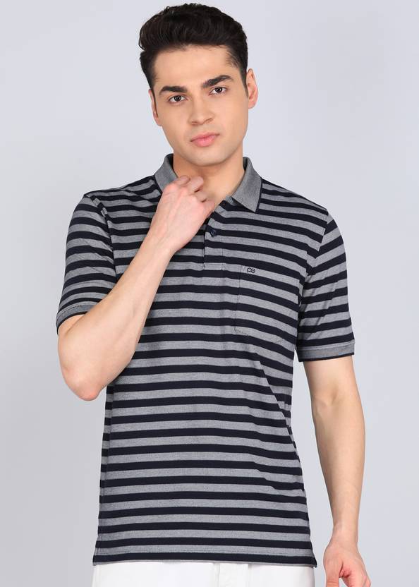 PETER ENGLAND Embroidered Men Polo Neck Blue T-Shirt